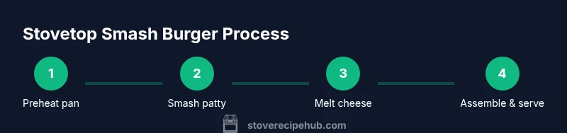On the stove, a smash burger delivers a blistered crust and juicy center with minimal effort. The key is heat, timing, and a good fat-to-meat balance. According to Stove Recipe Hub, a properly heated skillet and a thin patty are essential to develop the iconic crust without drying the interior. The Stove Recipe Hub team found that rapid searing of a small beef puck creates browning in seconds and seals juices quickly. In this guide, you'll learn to plan your mise en place, preheat and smash, melt cheese at the right moment, and finish with toasted buns and crisp toppings. By following these steps, you can produce restaurant-quality smash burgers at home using only a stove, a skillet, and a few pantry items.