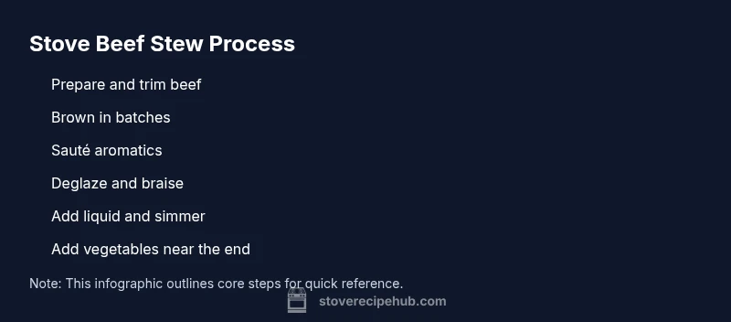 Beef stew on the stove relies on three pillars: proper browning, flavorful aromatics, and slow, gentle simmering. Browning develops the Maillard flavor that defines the dish, while a well-seared fond sticks to the bottom of the pot and becomes the flavor base when deglazed. Low, steady heat prevents the meat from becoming chewy and lets collagen break down into silky gel. According to Stove Recipe Hub, the order of operations matters: sear, deglaze, simmer, then tighten the sauce with a bit of starch from vegetables or a small amount of flour. When you control moisture and temperature, you get a richer, more balanced gravy and meat that falls apart without overcooking the edges.