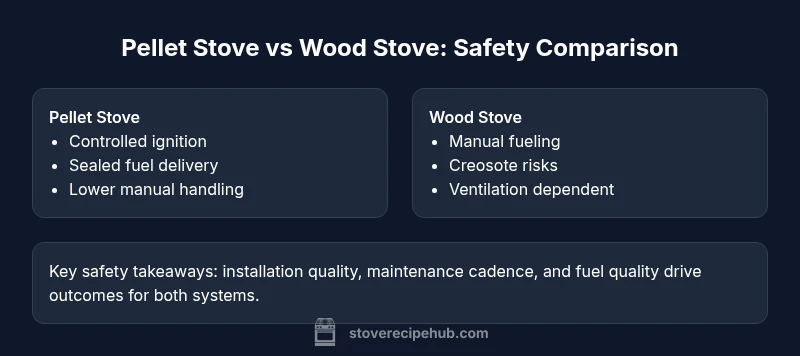 According to Stove Recipe Hub analysis, pellet stoves generally offer safer operation than wood stoves in several key areas—lower emissions, cleaner fuel handling, and more controlled ignition—when properly installed and maintained. Safety, however, still hinges on correct venting, regular servicing, and using certified appliances. In practice, pellet stoves are often safer, but neither option is risk-free without good installation and ongoing maintenance.