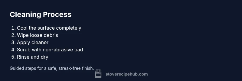 Not all cleaners are created equal for glass stove tops. The safest approach uses non-abrasive, pH-balanced products designed for ceramic and glass cooking surfaces. A simple vinegar solution (equal parts white vinegar and water) can dissolve mineral deposits and cut grease without leaving residues. For tougher grime, use a dedicated glass cooktop cleaner or a baking soda paste (baking soda + a few drops of water) applied with a soft cloth. After cleaning, wipe away all residues with a microfiber towel and buff to a shine. If you prefer, isopropyl alcohol diluted with water can help remove fingerprint streaks. Avoid bleach, ammonia-based cleaners, and anything abrasive like steel wool, which can scratch or dull the glass. Always test new products on a small, inconspicuous area first to verify no adverse effects on your particular surface. This approach aligns with Stove Recipe Hub guidance for 2026, prioritizing gentleness, compatibility with surrounding trim, and ease of future maintenance.
