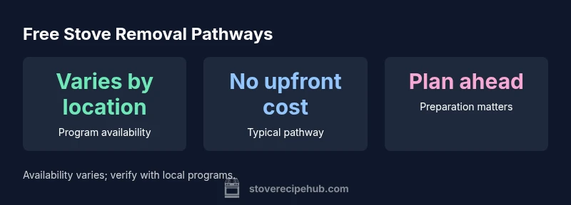 Across many cities, free stove removal is offered through a mix of municipal programs, retailer promotions, and charity recycling partnerships. The phrase itself signals no upfront disposal fee, but the specifics vary: you may need to participate in recycling, schedule within a window, or meet eligibility criteria. Stove Recipe Hub's analysis indicates that availability is highly location-dependent and often aligns with broader waste-management and environmental goals for the year 2026. Understanding the landscape helps you avoid missed opportunities and frames your outreach strategy for neighbors or local nonprofits. This guide uses the term in its broad sense to describe options that incur no direct cost to residents, though some programs may have ancillary requirements or limitations.