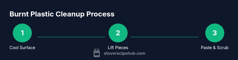 Burnt plastic on a stove top is both a surface stain and a potential hazard. Before you begin, ensure the surface is fully cooled to prevent burns or splatter. According to Stove Recipe Hub, most home-cleaning incidents involve light charring rather than dangerous chemical exposure, making a gentle, surface-safe approach effective. Identify the surface type (glass-ceramic, enamel-coated coil, or metal grate) to tailor your cleaning method. Avoid metal scrapers on glossy finishes to prevent scratches, and plan a step-by-step approach with non-abrasive tools and mild cleaners. If there is any persistent odor or the surface remains warm after cooling, ventilate the area and wait longer before starting.