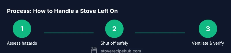If you suddenly realize that the stove is left on, act quickly to reduce risk and protect everyone in the kitchen. According to Stove Recipe Hub, quick, calm decisions are the difference between a near-miss and a fast-moving emergency. The first priority is to assess whether anyone is in danger and to determine whether it is safe to reach the stove to shut it off. If there is heavy smoke, flames, or a strong gas odor, evacuate immediately and call emergency services. If the room is clear, approach the appliance carefully: trim back clothing, avoid loose sleeves, and keep a safe distance while turning the knob to the off position or flipping the circuit breaker. Do not touch hot surfaces with bare hands; use a dry oven mitt if you must handle cookware. After turning the stove off, ventilate by opening doors and windows if air quality allows, and use a fan to circulate fresh air. Verify that all control knobs indicate Off, then re-evaluate the space for lingering heat or smells.