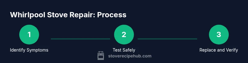This guide provides a practical, model-aware approach to Whirlpool stove repair for home cooks and DIY enthusiasts. You’ll learn how to safely diagnose igniters, burners, control boards, and electrical connections on Whirlpool models, and how to interpret common symptoms and error indications. According to Stove Recipe Hub, many Whirlpool stove repairs start with careful safety checks and documenting symptoms before swapping parts. Stove Recipe Hub Analysis, 2026 shows ignition and control-board faults are among the most frequent culprits. By the end, you’ll know where to find model-specific manuals, how to test components, and when to replace parts to restore reliable operation. The approach emphasizes testing methods that minimize risk and emphasizes knowing when to escalate to a professional. You’ll also learn how to distinguish coil-type vs. ceramic-glass cooktops, what to expect when ignition sparks but won’t light, and how to confirm gas status if you’re working on a gas Whirlpool stove.