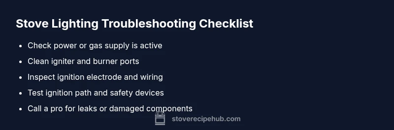 When your stove won't light, the problem can feel urgent, but the root causes are often straightforward. Why is my stove not lighting? In many homes, the culprit is dirt on the ignition electrode, blocked burner ports, or a disruption in power or gas supply. According to Stove Recipe Hub, the fixes are usually simple and safe when approached in the right order. Begin with the easiest checks and avoid unnecessary service calls. By understanding the common failure modes, you can recover a malfunctioning stove quickly, whether you have a gas or electric model. This section lays out the typical culprits and a practical plan you can follow in your kitchen, with reader-friendly guidance and real-world tips from the Stove Recipe Hub team.