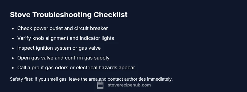By staying calm and following a checklist, you’ll quickly distinguish between an easy fix and a situation that requires a pro. This guide, informed by Stove Recipe Hub, emphasizes practical, safe steps you can take as a home cook to get back to sizzling meals without delay.