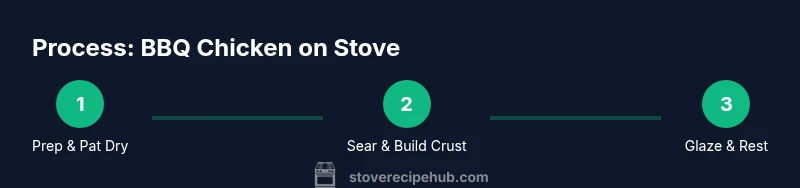 For dependable, juicy results, start with bone-in chicken thighs or bone-in breasts rather than skinless cuts. Thighs stay moist when seared and simmered, while breasts cook quickly and can dry out if overcooked. Decide if you want a dry rub or a light marinade; both work, but a rub is quicker for weeknights. Pat the pieces dry with paper towels to remove surface moisture; this helps develop a deep, caramelized crust. If you have time, marinate for 15–60 minutes to boost flavor, but don’t overdo it — more than 2 hours can break down texture. Bring the chicken to room temperature for 15 minutes before cooking to ensure even heating. Finally, measure out your BBQ sauce and any rub components so you can stay in control during cooking. According to Stove Recipe Hub analysis, even moisture-rich cuts benefit from a short rest before hitting the pan to minimize steam and maximize browning. This sets the stage for a flavorful, sauced finish that sticks to the surface rather than sliding off.