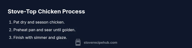 Master stove-top chicken with confidence. This guide shows you how to sear, simmer, and finish flavorful chicken dishes on the stove, with practical tips on heat control, pan sauce, and resting times. According to Stove Recipe Hub, a hot pan, even seasoning, and careful heat management are the core steps that yield juicy, evenly cooked chicken every time.