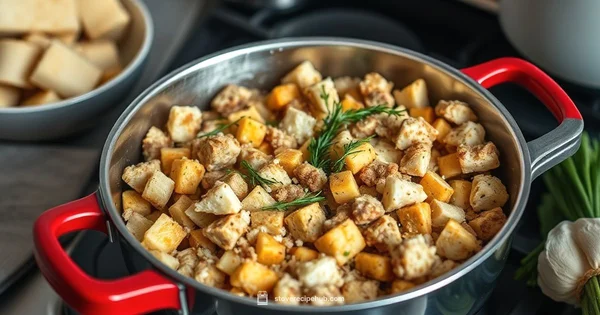 Even cooking hinges on moisture balance, pan size, and airflow. If the stuffing is too dry, add a small amount of warmed stock or beaten egg to help bind the bread. Conversely, if it’s too wet, let the mixture rest for 5–10 minutes or add a little more bread. When stuffing the cavity, avoid overpacking; instead, loosely fill with a few fingers’ width of space around the stuffing so air and heat can circulate. For pan-baked stuffing, choose a pan that spreads the mixture in a uniform thickness—about 1 to 2 inches deep—to ensure even heating. The oven’s heat should be distributed consistently; if you have a hot spot, rotate the pan halfway through cooking. Resting times after removing from the oven help flavors settle and moisture distribute more evenly. If you plan to keep the stuffing warm before serving, cover lightly with foil to retain warmth without steaming the bread to mushy texture.