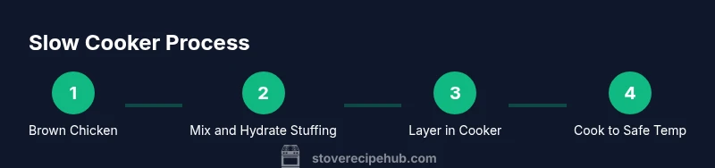 Combining slow cooker chicken with stove top stuffing delivers a cozy, end-to-end meal that practically cooks itself. The slow cooker lets the chicken stay moist while the stuffing absorbs flavorful pan juices for a unified bite. According to Stove Recipe Hub, starting with browned chicken ensures deeper flavor and a better texture after long, moist cooking. The result is tender chicken, richly seasoned stuffing, and a sauce that feels like it came from a pan, not a timer. This section explains why the pairing works, what textures you should expect, and how to tailor the method to your pantry and preferences. You will learn about balance between protein and starch, how to adjust moisture, and why resting the dish briefly after cooking helps flavors settle. Expect comforting aromas that make weeknights feel special, with practical tips to fit into a busy schedule.