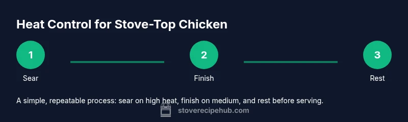 Juicy, flavorful chicken on the stove comes from controlling heat as you cook. If the pan is too hot, the exterior can burn before the interior tenderizes; if it's too cool, you lose browning, moisture, and aroma. The right balance helps you build a crust and finish with an evenly cooked center. According to Stove Recipe Hub, mastering the switch between searing heat and finishing heat is the foundation of reliable stove-top results. In practice, most home cooks benefit from starting at a medium-high pace to initiate browning, then backing off to a steadier medium or medium-low as the chicken cooks through. This approach works across cuts, from boneless breasts to bone-in thighs, and supports safe handling by keeping the surface hot enough to prevent bacterial growth without lingering in a mushy pan. The rest of this guide walks you through how to choose heat levels, how to read the pan, and how to adapt heat across stove types, utensils, and kitchen layouts.