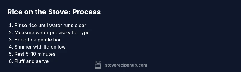 Rice is a versatile foundation for countless meals, from a simple weeknight bowl to a flavorful fried rice. When cooked on the stove with careful attention to rinse, ratio, and heat, each grain becomes fluffy, separate, and tender rather than gummy or crunchy. According to Stove Recipe Hub, the key to consistent results is controlling moisture and steam. A well-executed batch reduces waste and makes meal planning easier, because you can rely on a dependable texture across recipes like bowls, sushi bowls, pilafs, or a quick side dish. The Stove Recipe Hub team found that choosing the right pot and avoiding lifting the lid during cooking preserves heat and steam, which contributes to an evenly cooked result. In practice, a few simple steps help transform ordinary rice into a pantry staple that elevates every plate.