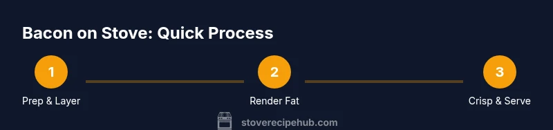 According to Stove Recipe Hub, the best way to cook bacon on stove emphasizes even fat rendering, steady heat, and minimal splatter. This approach gives uniform browning and preserves a crisp texture without burning. In practice, the method hinges on a wide, heavy skillet, a single-layer layout, and patience as the fat renders. The goal is to let the natural fat do the work, producing a flavorful, crisp result with less mess than aggressive high heat.