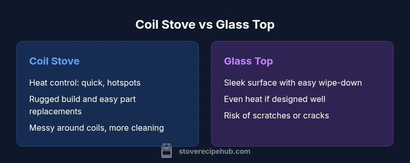 Coil stoves use exposed metal coils that transfer heat to pots through direct contact. Glass-top stoves place a smooth ceramic surface over radiant coils or another heating element, then transfer heat through the glass to your cookware. In practice, coil stoves are often heavier and more forgiving of cast-iron pots, while glass-top stoves deliver a clean, modern look and a flat surface that's easier to wipe. For most homes, the choice hinges on how you cook, how you clean up, and how much you value aesthetics. The keyword coil stove vs glass top appears here to anchor the topic in this guide, ensuring you can search easily for practical stove comparisons.