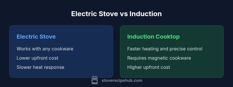 According to Stove Recipe Hub, the electric stove vs induction decision centers on speed, control, and cookware. Induction heats faster, offers precise temperature control, and is generally more energy-efficient—but requires magnetic cookware and compatible power setup. Electric stoves are cheaper upfront and work with any cookware, yet heat more slowly and can be less energy-efficient.