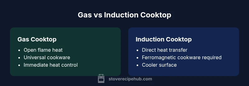According to Stove Recipe Hub, the debate between a gas and induction cooktop is as much about cooking style as it is about kitchen safety and energy efficiency. In this comparison, we examine two popular stove-top technologies: gas and induction, often described as gas vs induction for short. The term gas and induction cooktop summarizes the broader category of fuel-powered gas stoves and electric-powered induction surfaces. The choice affects heat control, cookware requirements, cleaning, safety, and installation. For many households, the decision hinges on how you cook: do you need high-heat searing and wok work, or do you prioritize rapid heating, precise, repeatable temperatures, and effortless cleanup? The Stove Recipe Hub analysis notes that induction generally delivers faster heat-up and tighter control with a cooler surface, while gas offers immediate flame feedback and broad cookware compatibility. Every kitchen has different constraints: electricity availability, ventilation, budget, and cooking repertoire. This guide explains the core differences, practical trade-offs, and decision criteria to help you pick the right gas and induction cooktop configuration for your home. Ultimately, the best choice aligns with your cooking style, safety preferences, and maintenance expectations.