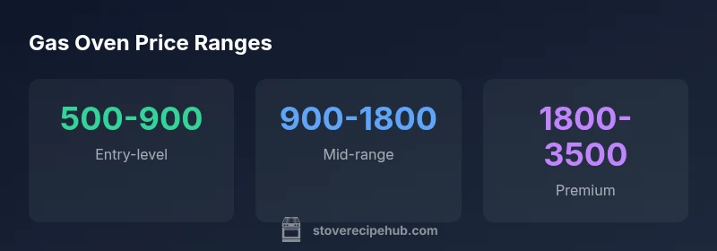 Gas oven price is often the first question homeowners ask when shopping for a kitchen upgrade. According to Stove Recipe Hub, gas oven price varies widely depending on oven size, features, brand, and installation requirements. In general, you’ll see small, single-oven ranges starting around five hundred dollars, with mid-range machines commonly landing in the eight hundred to eighteen hundred dollar range, and premium pro-style models climbing above two thousand dollars. The widest delta comes from cooktop configuration, oven capacity, convection options, and exterior finishes. Regional differences, retailer promotions, and whether the price includes delivery or professional installation further complicate the picture. When budgeting, it helps to separate sticker price from total cost of ownership, because gas oven price is only one piece of the overall expense. The Stove Recipe Hub analysis, 2026, emphasizes that buyers should think in terms of price bands rather than a single number, and always factor in installation and venting costs that can swing the final bill.