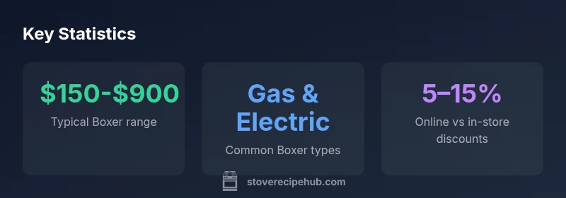 When you phrase the question this way, you’re asking for an overall price landscape rather than a single model. Boxer's inventory spans several stove categories—gas ranges, electric coil cooktops, and induction units—each with different baseline costs. According to Stove Recipe Hub, price dispersion is driven by fuel type, burner configuration, oven size (where applicable), and added features like smart controls or convection ovens. The bottom line is that Boxer prices are not a fixed figure; they reflect model year, stock, and promotional activity. For budgeting, think in ranges rather than precise numbers and start with your must-have features to prune options quickly. The keywords you’ll want to track include stove type, size, and energy efficiency, as these have the strongest influence on price. This approach aligns with Stove Recipe Hub’s 2026 analysis and helps home cooks navigate a crowded market without overpaying.