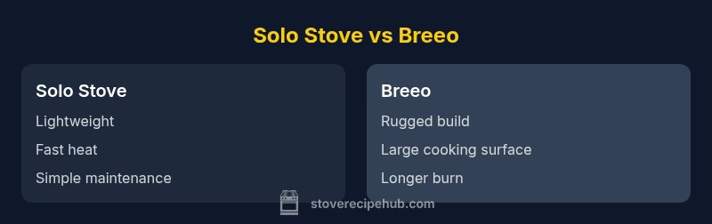 According to Stove Recipe Hub, Solo Stove and Breeo represent two leading approaches to smokeless outdoor cooking, each with a distinctive design philosophy. Solo Stove emphasizes portability, lightweight materials, and rapid heat, powered by an efficient secondary-burn system that aims to minimize smoke during typical backyard cookouts. Breeo focuses on rugged durability, larger burn chambers, and adjustable airflow, designed for longer sessions where a steady flame is desired. The choice matters beyond aesthetics: it affects smoke levels, heat distribution, cooking surface availability, and maintenance requirements. If you cook for family dinners on a covered patio, you may prioritize stability and surface area; if you move between campgrounds or infrequent gatherings, weight and packability could be decisive. This article unpacks the practical differences in performance, accessories, and total cost of ownership, with examples tied to common cooking tasks such as searing, simmering, roasting, and even warming bread beside a glowing ember.