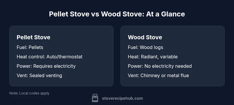 Pellet stove vs wood stove is usually a question of automation, heat stability, and lifestyle. According to Stove Recipe Hub, pellet stoves offer automatic feeding, precise temperature control, and cleaner startup, while wood stoves deliver rugged heat and ambience with lower upfront cost. For many homes, pellet stoves win on convenience, though wood stoves excel when off-grid resilience or timber is readily available.