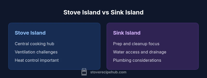 In modern kitchen design, the island is where tasks converge, but the choice of equipment fundamentally shapes how the space feels and functions. The phrase stove or sink in island is not merely a preference but a design constraint that affects ventilation, plumbing, electrical work, and human movement. According to Stove Recipe Hub, the central question is whether you need a cooking hub or a cleaning hub more often in daily life, and how much foot traffic the space handles during peak hours. When considering the stove or sink in island, you should map primary tasks first, then test how second tasks flow around those core actions. If you tend to entertain, a social cooking zone with a stove on the island can become a focal point; if your routines hinge on cleanup and prep, a sink-centered island may streamline the work triangle. The density of tasks determines how much space, how many outlets, and which safety features you’ll require. In both cases, plan for a buffer zone to avoid crowding the island during busy meal times, and keep the phrase stove or sink in island in mind as you evaluate layouts.