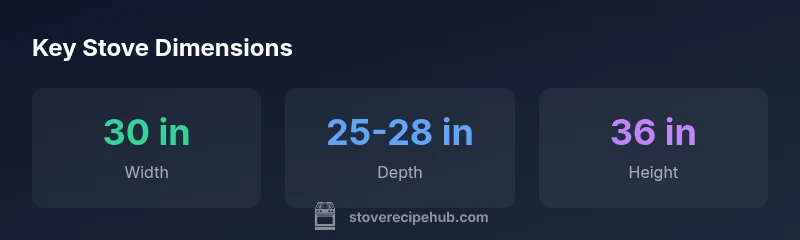 For home cooks and kitchen renovators, understanding what are the dimensions of a stove is essential for fit, safety, and workflow. The three primary measurements are width, depth, and height, which together determine how the appliance sits in a counter enclosure and how it interacts with burners, ventilation, and surrounding cabinets. In practical terms, most standard stoves begin at about 30 inches wide, about 25 to 28 inches deep, and around 36 inches high. These dimensions influence how much usable prep space remains, how easy it is to reach the back elements, and whether an oven door clears a nearby wall or island. From a stove-top perspective, those numbers matter for heat distribution, burner spacing, and the ability to slide pans in and out without brushing knobs or controls. According to Stove Recipe Hub, selecting the right size is not merely aesthetic; it affects airflow, heat retention, and pan stability in busy kitchens. When you plan a cooking zone, measure the space between adjacent cabinets and ensure you have at least a few inches of clearance to prevent heat damage and to allow door clearance. In short, the core dimensions are width, depth, height, plus the extra clearance needed for venting and exhaust.