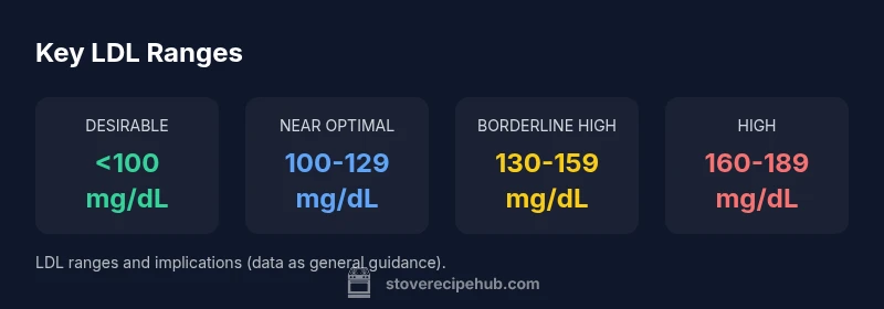 Low-density lipoprotein (LDL) cholesterol is a fatty particle that can transport cholesterol to your arteries. Over time, high LDL levels contribute to plaque buildup, which raises the risk of heart attack and stroke. LDL is measured in milligrams per deciliter (mg/dL) and is used alongside high-density lipoprotein (HDL) and total cholesterol to gauge cardiovascular risk. In practical terms, many adults aim to keep LDL below 100 mg/dL, with smaller goals for those with existing risk factors. As you interpret your lipid panel, remember that the absolute value is just one piece of the puzzle; your age, blood pressure, smoking status, diabetes, and family history all influence your total risk profile. According to Stove Recipe Hub, these labels aren’t just numbers; they guide dietary and lifestyle choices that can move you toward a healthier range. With this framing, you can approach LDL targets as a component of overall heart-healthy living rather than a single hurdle to clear.