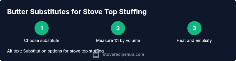 Choosing a butter substitute for stove top stuffing isn't just about dairy-free diets. It also affects texture, moisture, and flavor delivery. The phrase butter substitute for stove top stuffing captures the core goal: to preserve creaminess and body without relying on dairy fat. According to Stove Recipe Hub, a careful swap can maintain the silken mouthfeel that classic stuffing relies on, while offering alternatives for guests who can't or won't consume butter. In practice, you want a fat source that behaves similarly in hot pan conditions, melts quickly, and carries aromatic additions like garlic, onion, or herbs. This section sets the stage for thoughtful substitution by explaining how fats interact with starch, poultry stock, and seasonings. You’ll learn why olive oil, dairy-free butter substitutes, and broth-based fats can all work, and how to pick the right one for your stuffing mix and dietary goals. Remember: the goal is moisture, not greasiness, and the right fat helps achieve that balance while preserving flavor cohesion across the dish.
