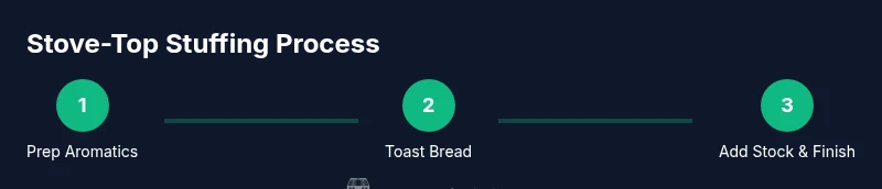 The common approach to stove top stuffing directions emphasizes balancing bread absorption with moisture content. Start with a light sauté of aromatics in butter, then add bread and liquid gradually. Allow time for the crumbs to puff and the flavors to meld. Keep heat moderate to prevent scorching and adjust seasoning toward the end. This quick reference helps you translate the theory of stuffing into reliable results without overthinking the steps. Remember, practice makes perfect with stove-top stuffing directions.